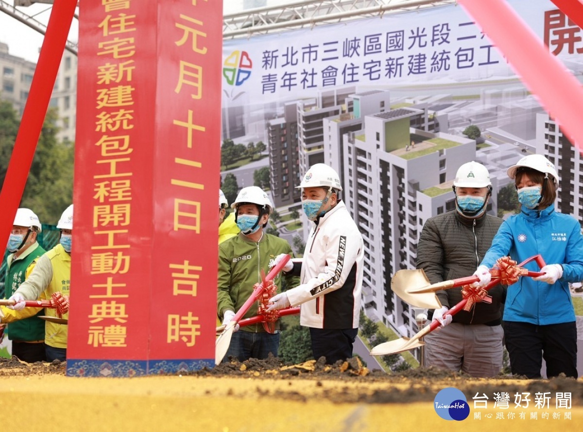 新北市長侯友宜12日主持三峽國光段(二期)青年社會住宅開工動土典禮,期許社宅工程平安順利,讓市民及到新北打拼的青年學子,在社會住宅多元政策下有更多租住選擇,並指未來三峽國光段二期社宅的非營利幼兒園、公共托育、公共托老、銀光咖啡座、庇護工場,在落實居住正義的同時也優化托育環境及完善高齡照護。